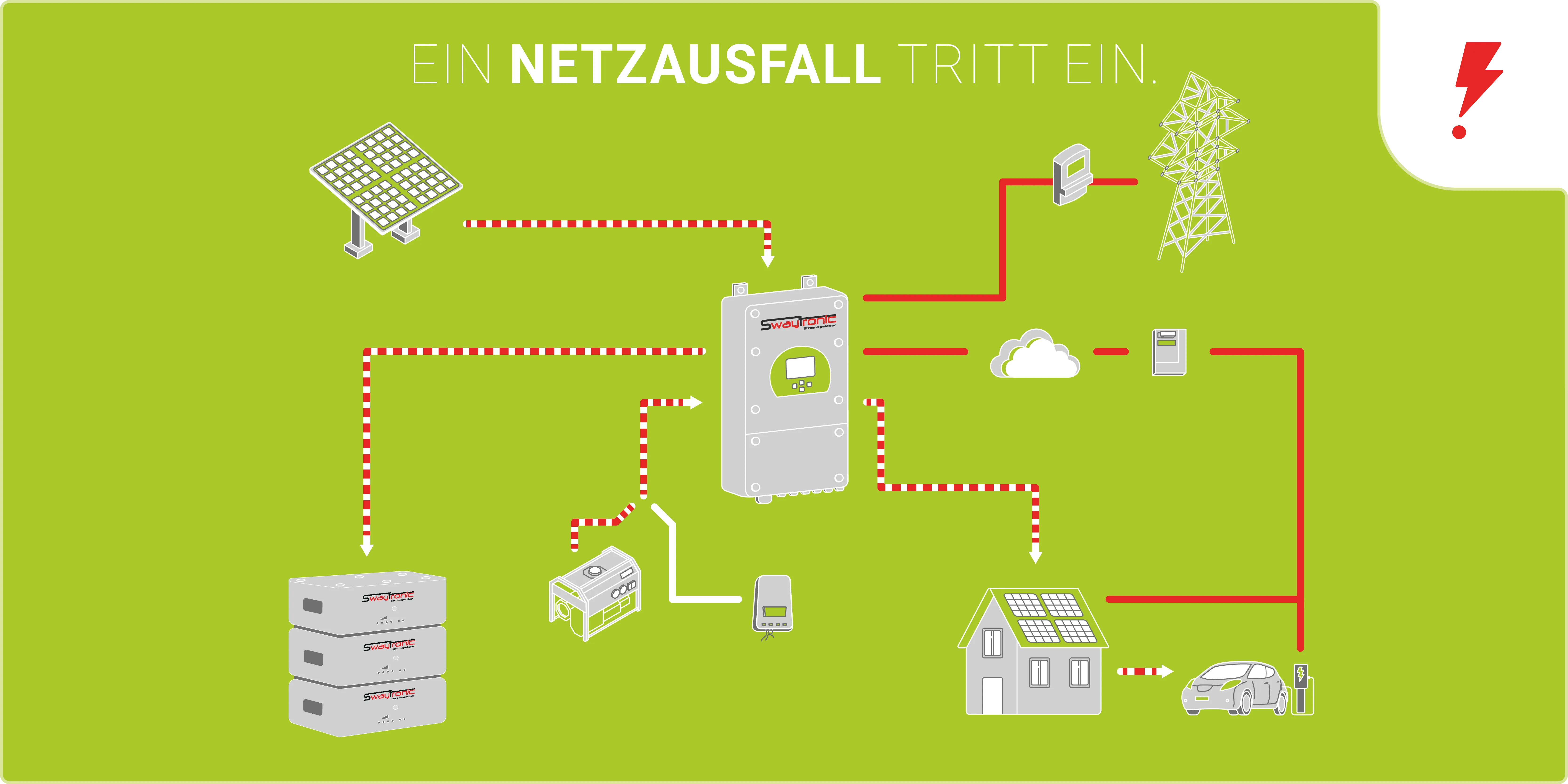 Unser All-In-One System deckt jede Eventualität ab, um auch im Notfall noch über genügend Strom zu verfügen.